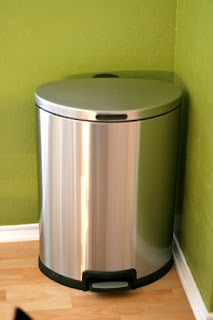 Oh yeah, and we also got a new trash can which I have been wanting for a long time. The old one was so plain and so dirty and so gross. Here is the old one and the new one.